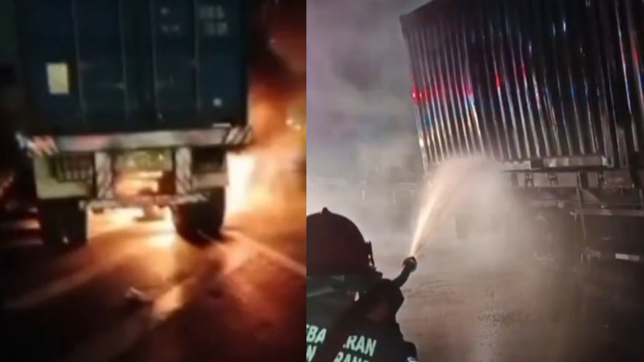 Api yang membesar dalam hitungan menit membuat petugas tol dan pemadam kebakaran harus bergerak cepat untuk mengamankan lokasi dan mencegah potensi ledakan dari muatan kontainer.