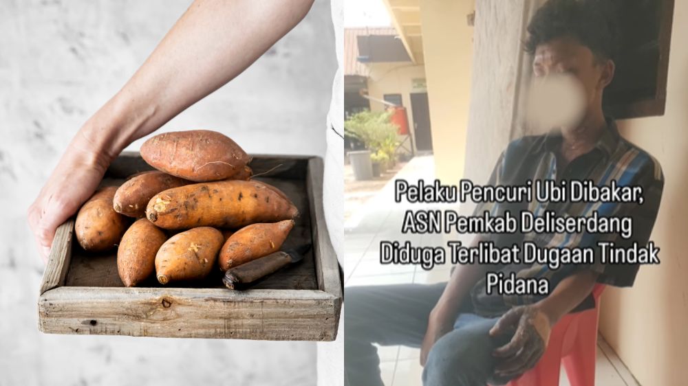 Pemuda di Sumut dibakar oknum ASN dan polisi usai kepergok mencuri ubi. /Kolase Bacakoran.co--Freepik dan Instagram @medan_lambe