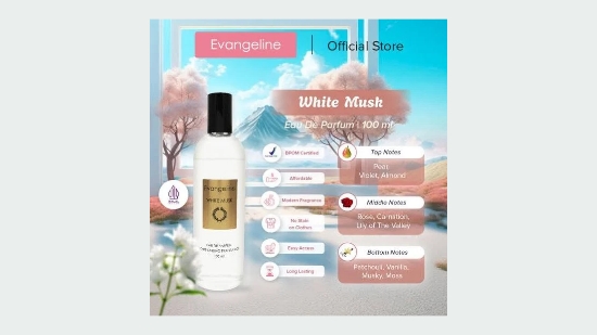 Parfum Evangeline White Musk adalah parfum dengan tipe aroma clean, soft dan punya kesan seperti bedak bayi.