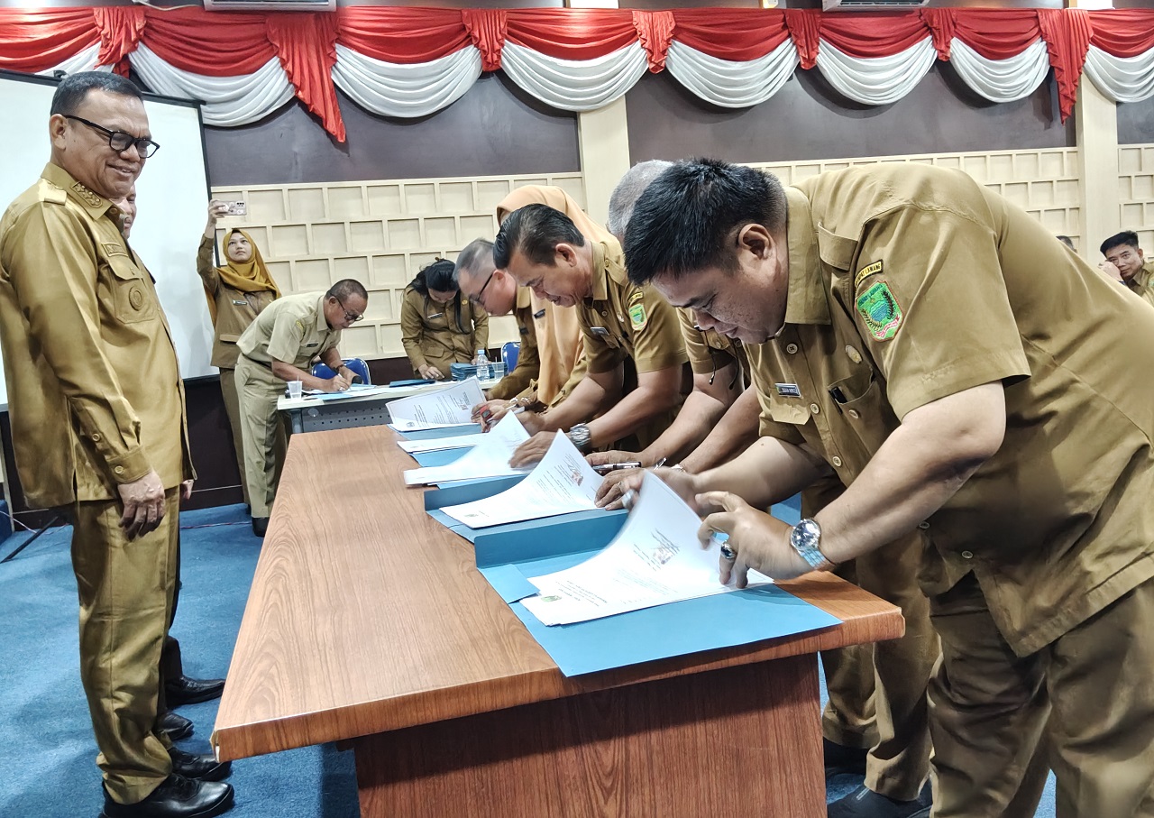 para pejabat itu diminta untuk menandatangani dan surat pernyataan sebagai pejabat tinggi pratama dan administrator di lingkungan pemkab empat lawang.