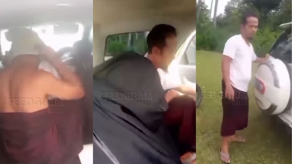 Viral video warga Simeulue gerebek ustad dan wanita bercadar berduaan di mobil pantai./Kolase Bacakoran.co--Instagram @feedgramindo