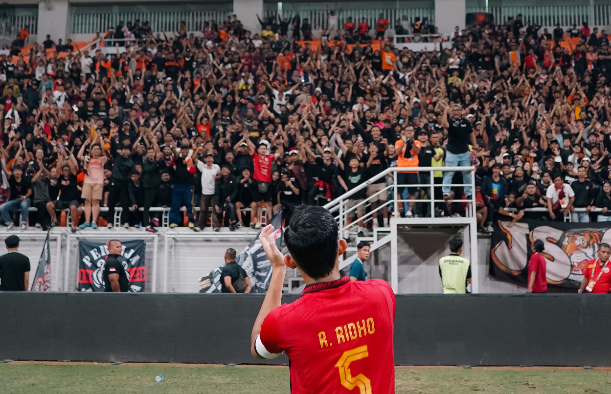Kapten Persija Rizky Ridho saat memberikan apresiasi atas dukungan dari The Jakmania -persija-