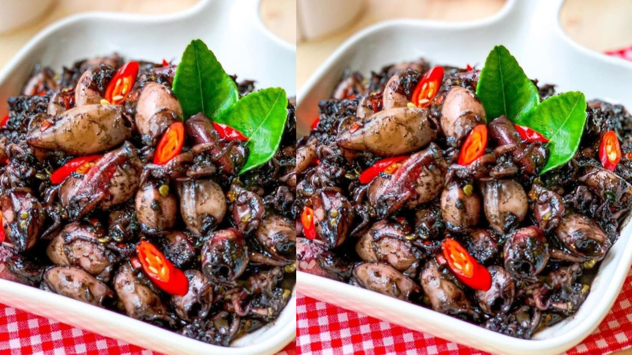 Masakan khas ini menggunakan tinta cumi yang menambah cita rasa gurih, sekaligus memberikan tampilan hitam pekat yang menggugah selera.