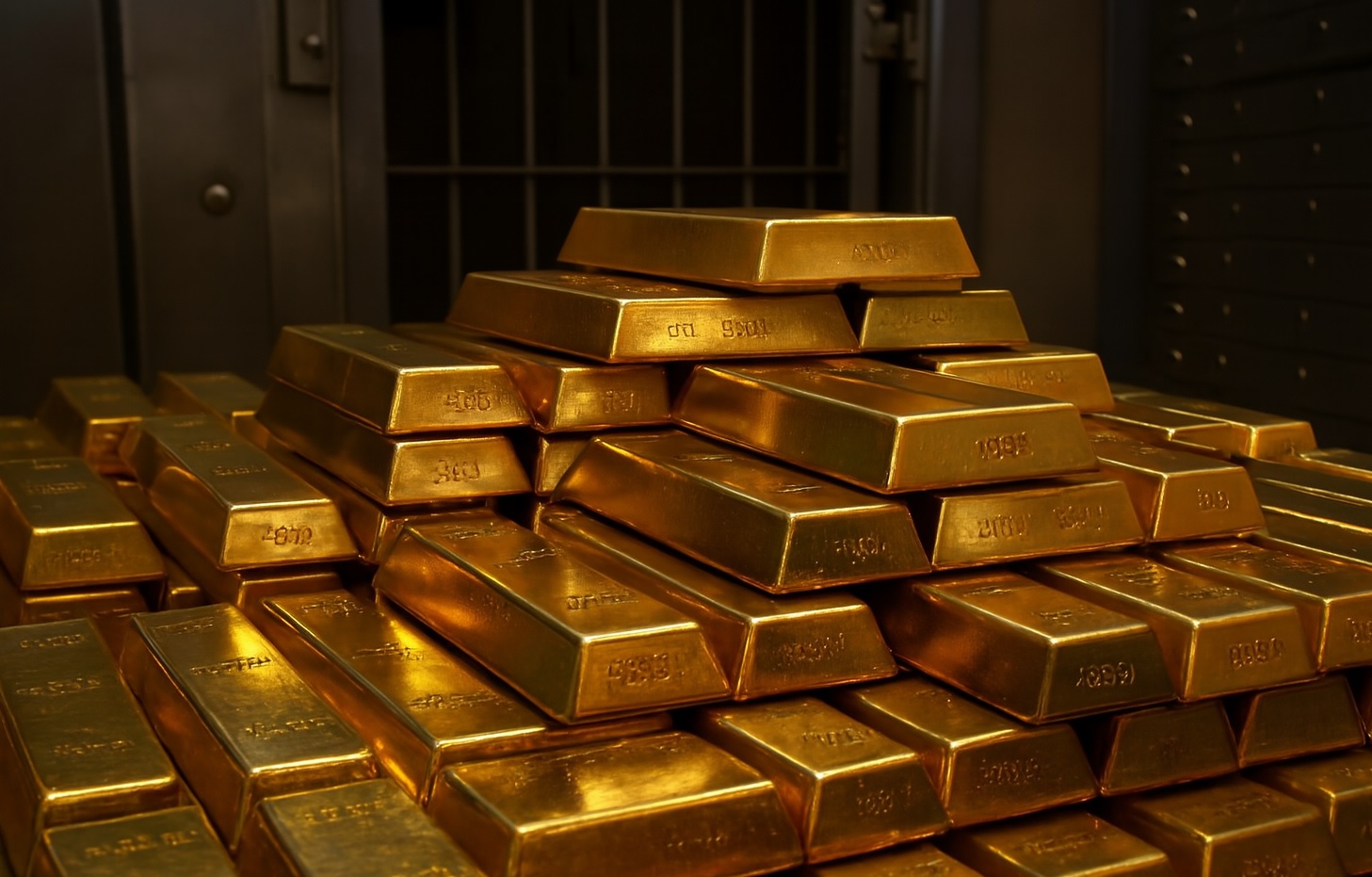 Rekor harga emas lima hari beruntun akhirnya terhenti setelah hari ini anjlok imbas komentar tajam the fed agar bank sentral berhati-hati turunkan suku bunga.--ai generate/ist