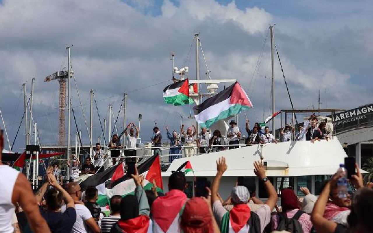 Sebelumnya armada Global Sumud Flotilla (GSF) dicegat oleh tentara Israel di perairan internasional menuju pantai Jalur Gaza pada Rabu (1/10) malam pukul 20.30 waktu setempat.