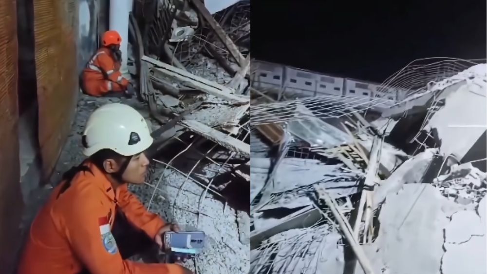 Dari dalam reruntuhan, terdengar suara beberapa orang meminta tolong, yang diduga merupakan santri Pondok Pesantren Al Khoziny.