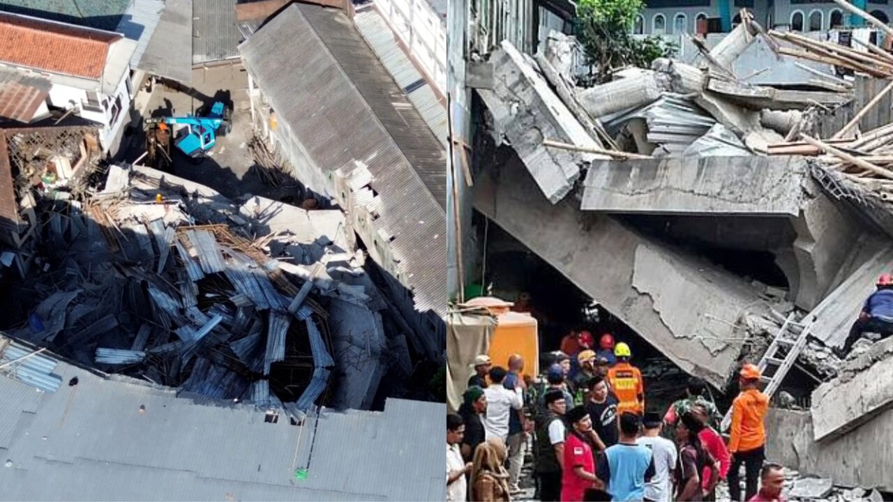 Tanpa disangka bangunan setinggi tiga lantai yang baru saja selesai dicor runtuh menimpa para santri.