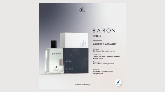 parfum alt perfumery baron adalah parfum dengan sentuhan citrusy, fresh dan sedikit pedas dari leather yang kemudian hadir kesan hangan dan maskulin.