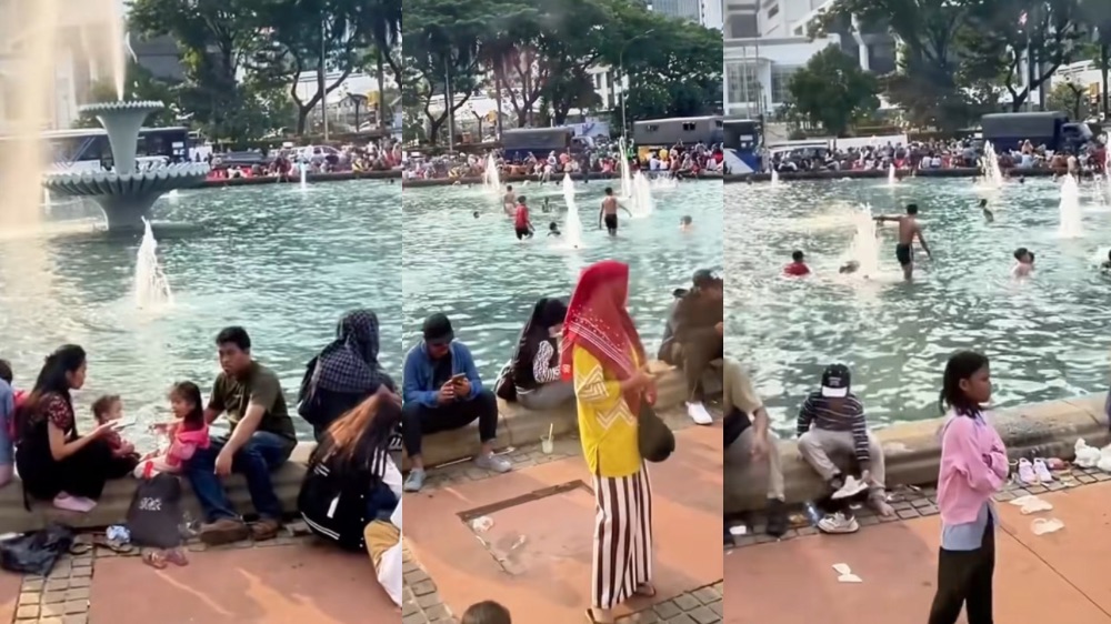 "POV: Air mancur Thamrin jadi waterpark," tulis salah satu pengguna media sosial dalam keterangan video yang diunggah dan dikutip pada Senin (6/10/2025).