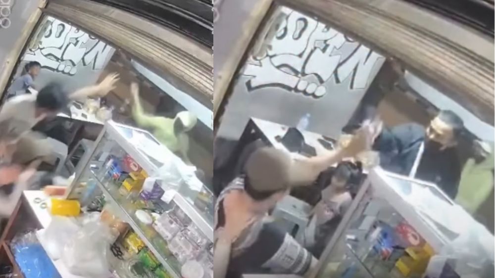 Beberapa pria berpakaian gelap tiba-tiba datang dan langsung menyerang pemilik warung serta dua karyawan yang sedang bertugas.