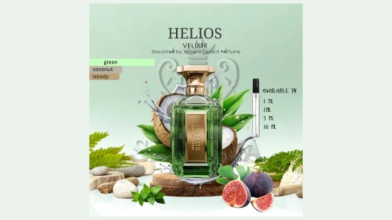 parfum velixir helios adalah parfum dengan aroma aquatic yang fresh dan juga dibarengi dengan aroma creamy dan mint.