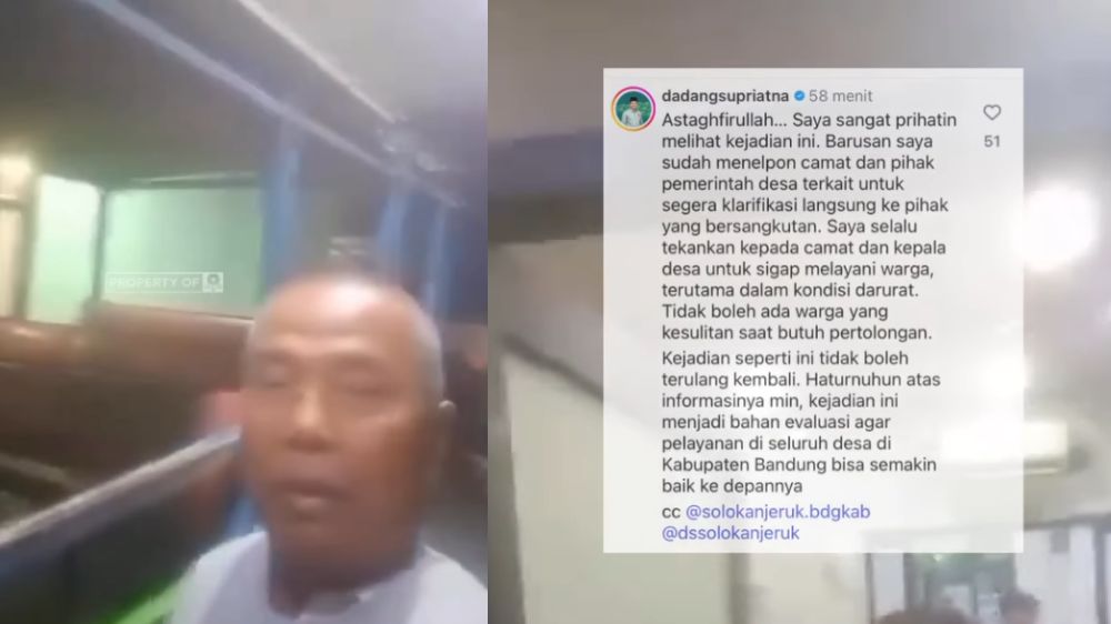 "Mana pelayanan Desa Solokanjeruk. Piraku nganter pasien make odong-odong," ucap pria tersebut dalam video yang kini telah tersebar luas.