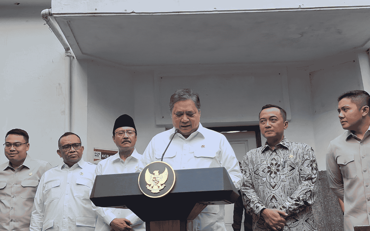 Menteri Koordinator Bidang Perekonomian Airlangga Hartarto memberikan keterangan pers terkait penyaluran BLT tambahan di Kantor Pos Cikini, Jakarta, Jumat (17/10/2025).--Disway.id