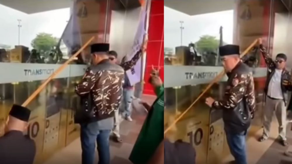 GP Ansor Bandung segel Transmart Buahbatu, protes tayangan TV yang dinilai lecehkan kiai dan pesantren./Kolase Bacakoran.co--Instagram @medsoszone