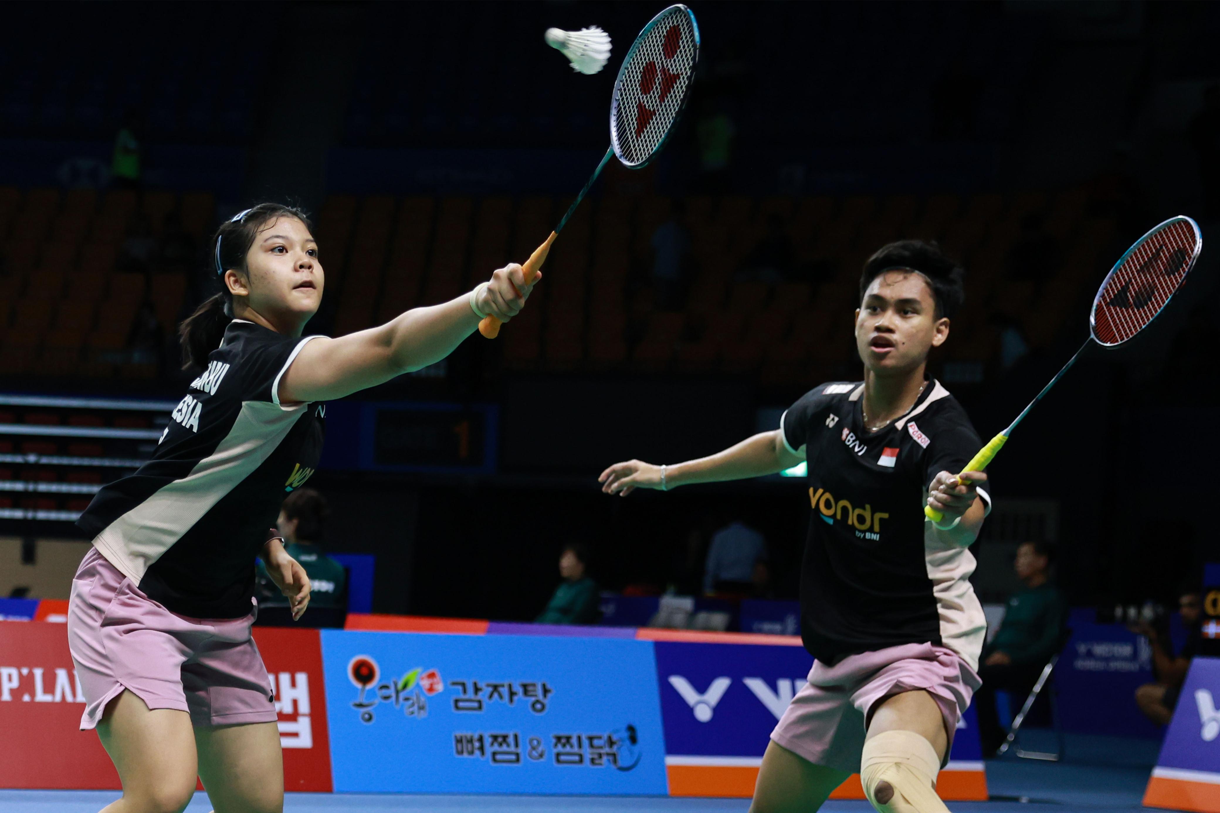 adnan maulana/indah cahya sari jamil harus angkat koper usai takluk dari mathias christiansen/alexandra bøje asal denmark dengan kedudukan 20-22/21-14/15-21.-pbsi-