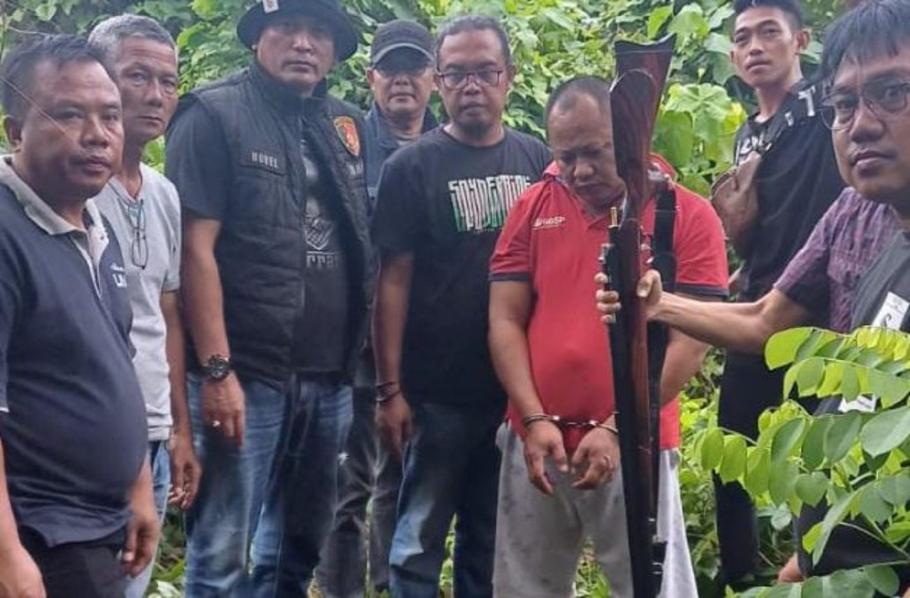 Tersangka MP ketika baru ditangkap beserta barang bukti senapan angin (foto: ist)--