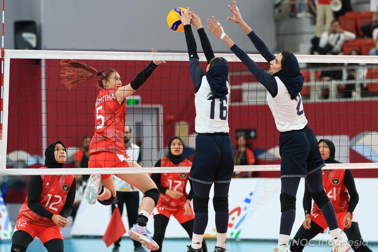 tim voli putri indonesia meraih medali perak setelah bertarung sengit melawan iran di babak final. pertandingan berlangsung dramatis hingga set kelima dengan skor akhir 3-2 untuk iran.