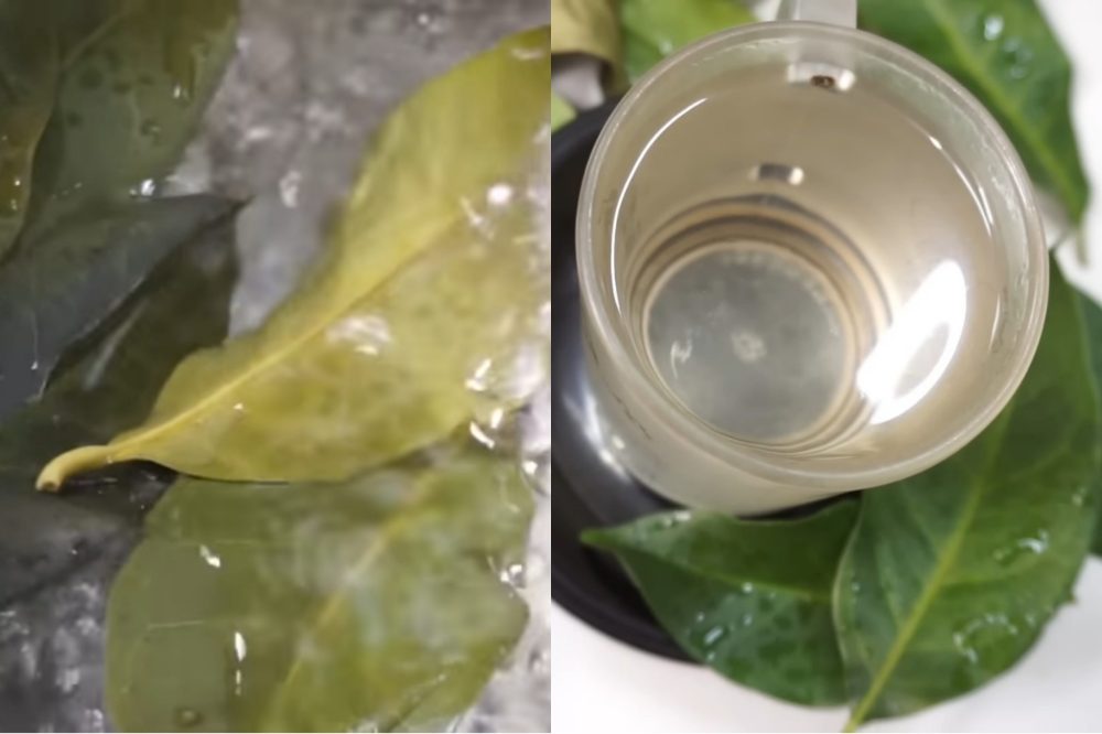 - Saring air rebusan daun salam dan simpan di dalam botol atau wadah yang bersih.