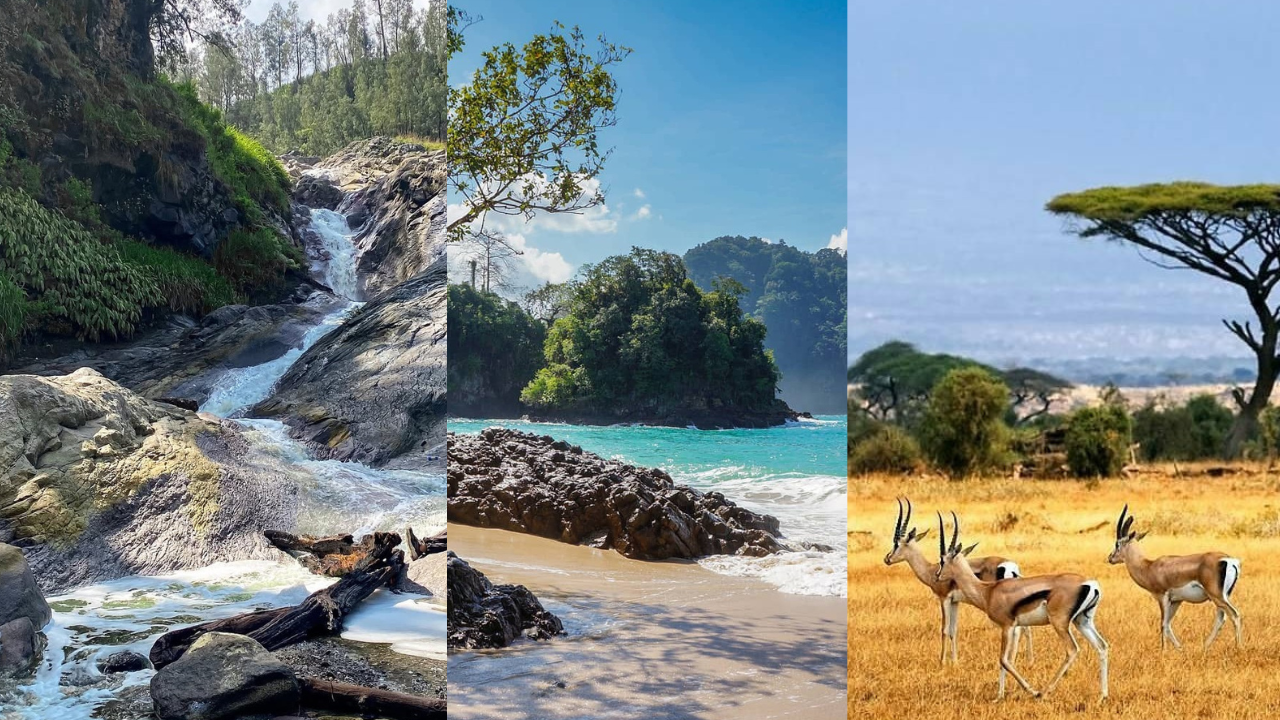 Bayangkan memandangi air terjun berwarna unik yang tersembunyi di lereng gunung, merasakan debur ombak di teluk dengan air hijau turquoise yang bening, lalu menyusuri hamparan savana luas yang mirip benua Afrika semuanya dalam satu rangkaian perjalanan.