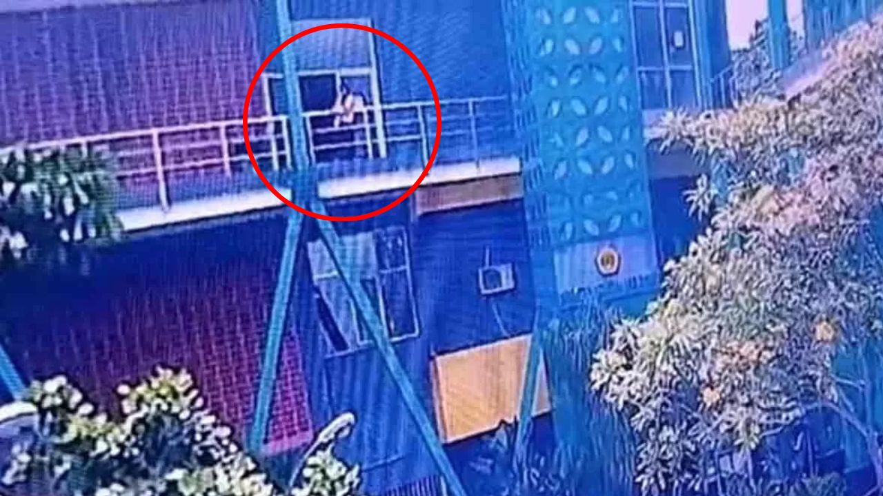 Menurutnya, korban terlihat berada di lantai tiga, tepat di tepi pagar pembatas atau balkon gedung.