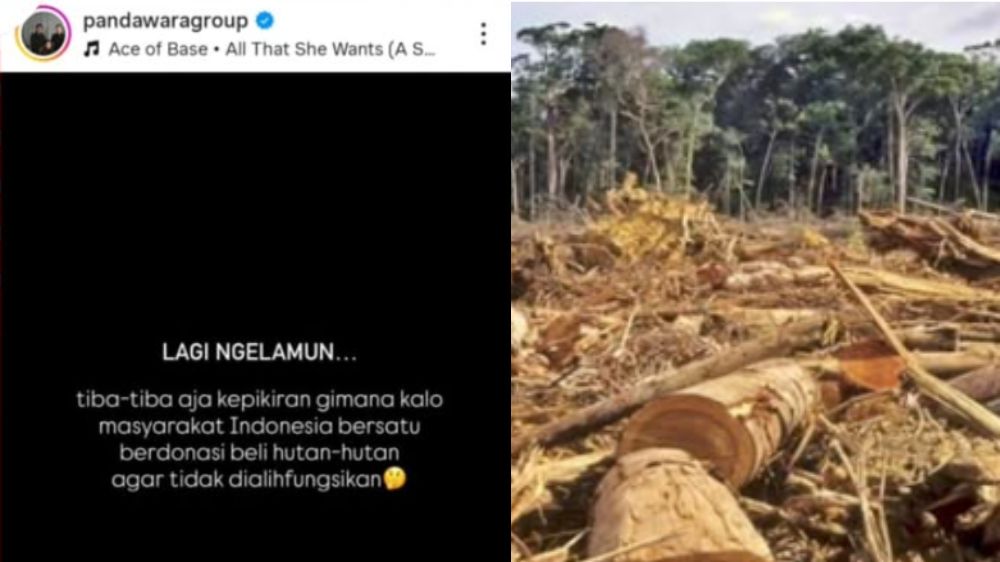 Ajakan patungan membeli hutan viral di media sosial, warganet dorong konservasi kolektif demi cegah deforestasi dan selamatkan satwa Indonesia./Kolase Bacakoran.co--Instagram @lambe_turah