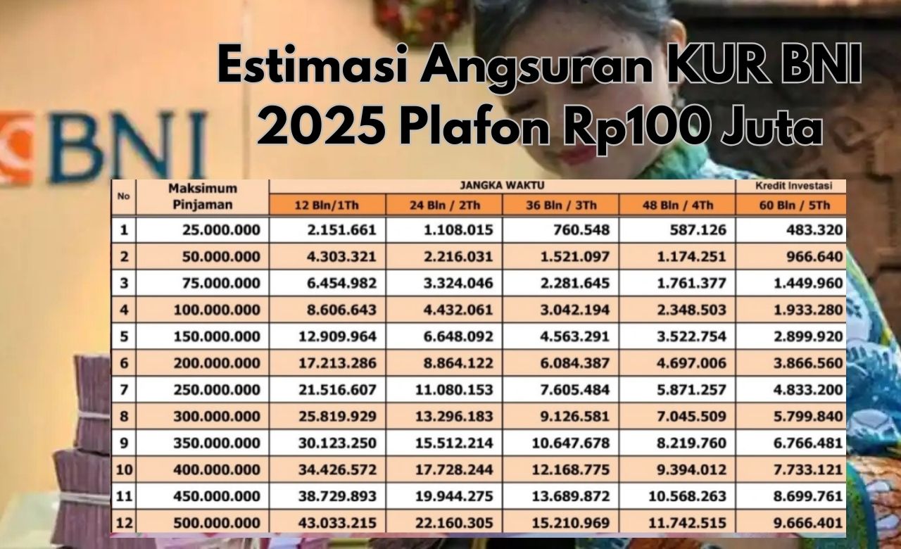 nah, sebelum mengajukan, umkm wajib tahu estimasi angsuran kur bni 2025 plafon rp100 juta agar bisa menghitung kemampuan bayar secara tepat.
