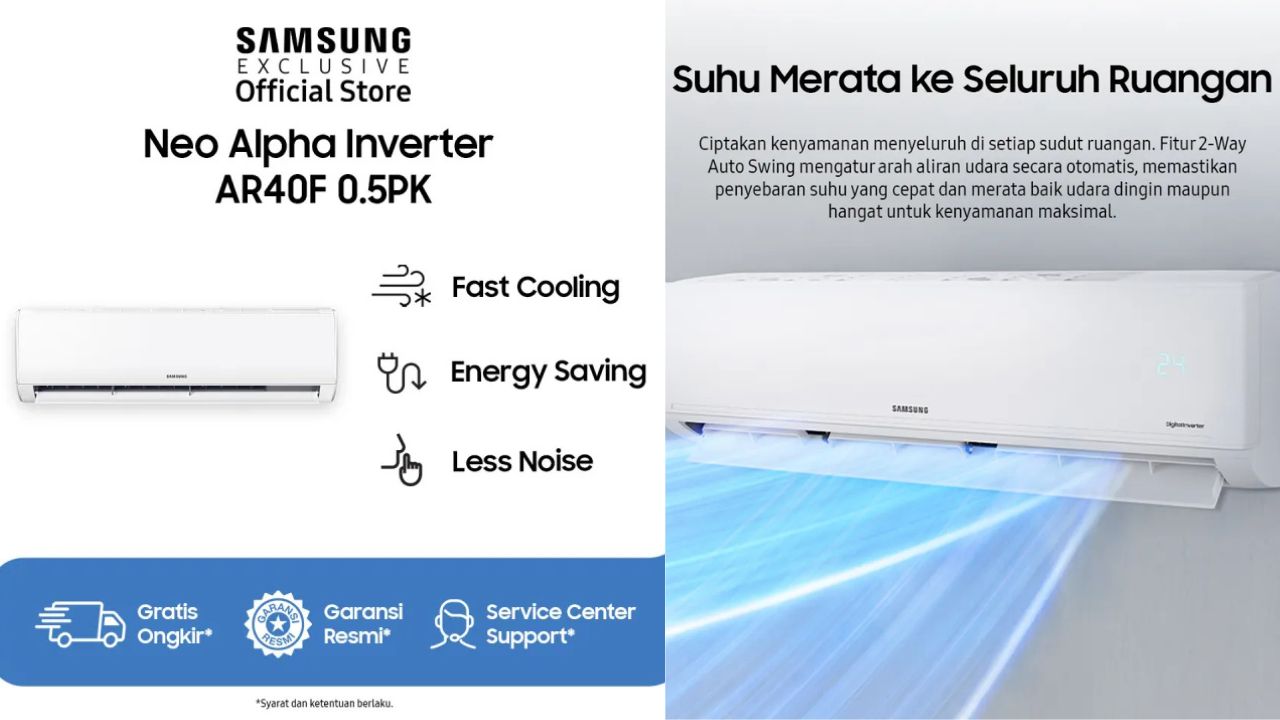 BACAKORAN.CO - Samsung kembali menarik perhatian pasar elektronik Indonesia dengan menghadirkan produk pendingin ruangan terbaru mereka, yaitu Samsung Neo Alpha Inverter tipe AR40F05D0AMN.