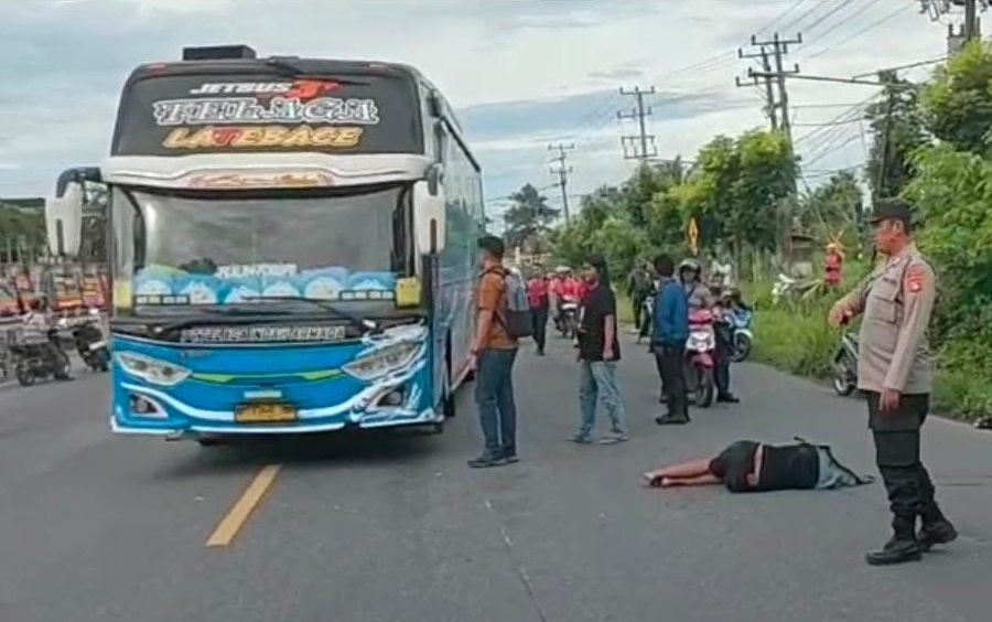 Sebuah sepeda motor yang dikemudikan Muhammad Faishol Amin (35), warga Desa Lembak, Kecamatan Lembak, Kabupaten Muara Enim yang diduga hendak berbelok terserempat dan dilindas Bus Antar Kota Antar Provinsi (AKAP) warna biru dengan nomor polisi G 7540 OD tujuan Pagar Alam - Bekasi yang dikemudikan Asrul (56), warga Kota Pagar Alam.
