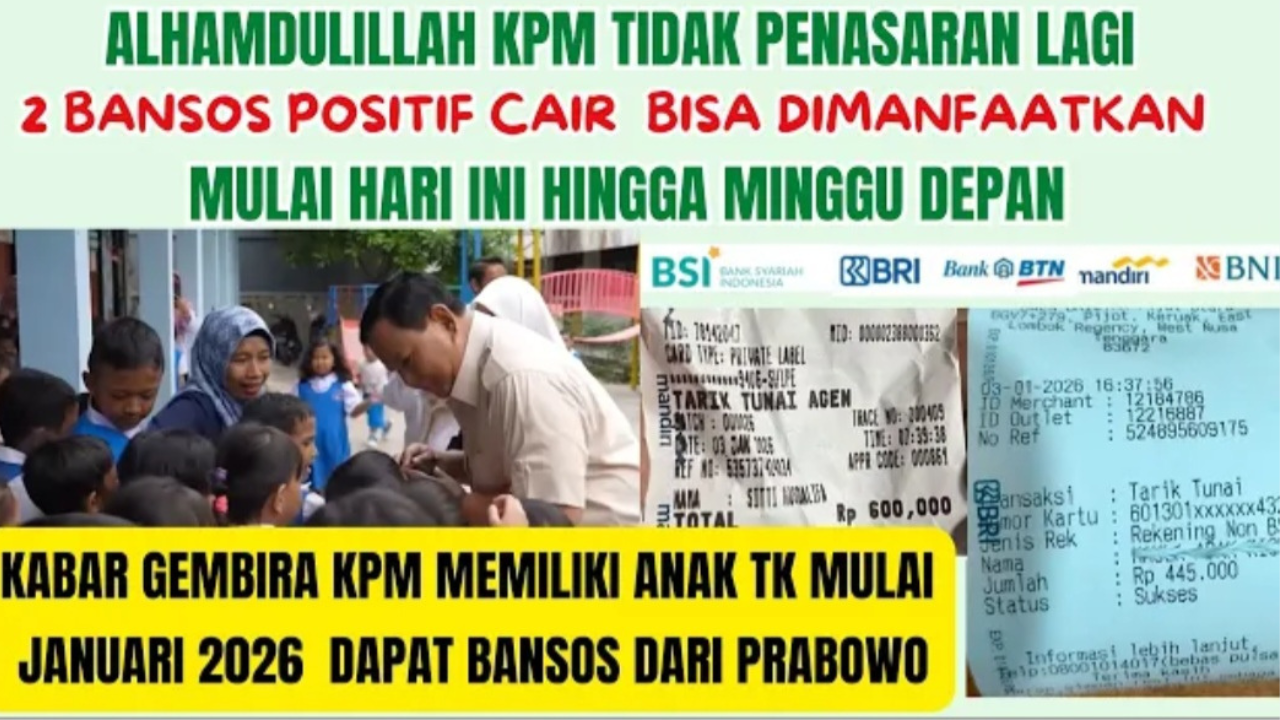 Memasuki hari ini, dua bantuan sosial (bansos) resmi mulai cair, membuat KPM semakin bahagia karena dana bantuan sudah bisa dimanfaatkan langsung untuk kebutuhan sehari-hari.