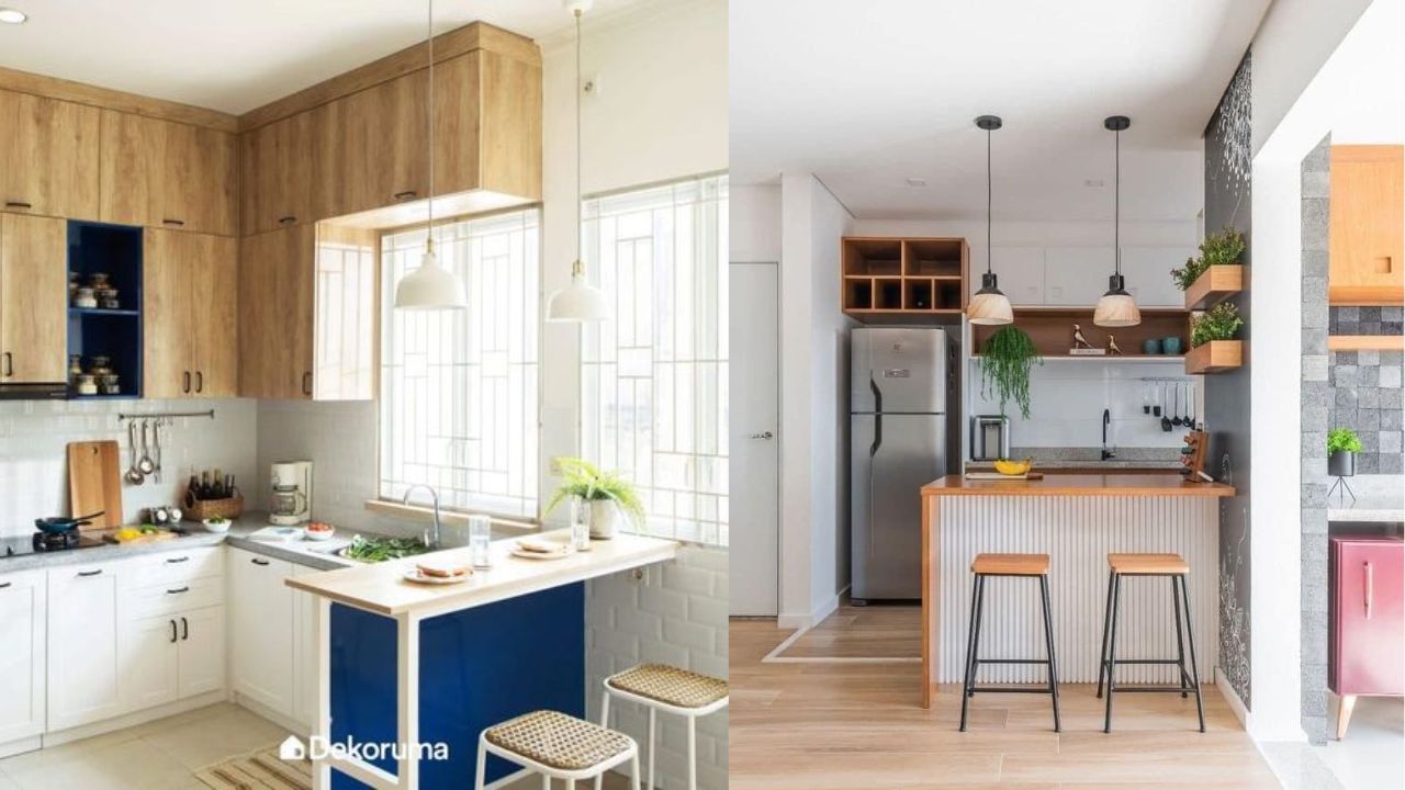sentuhan elegan biasanya ditambahkan melalui aksesori pilihan, seperti lampu gantung bergaya industrial, backsplash dengan motif geometris, atau kursi bar minimalis yang ergonomis.