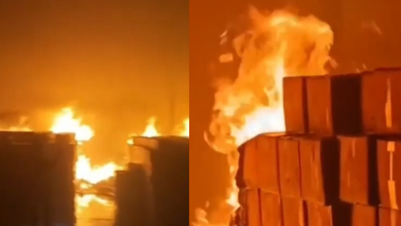 Api yang cepat menyebar membuat seluruh bangunan dan isinya hancur total, dengan penyebab awal diduga berasal dari korseleting listrik yang menyambar material mudah terbakar di dalam gudang.