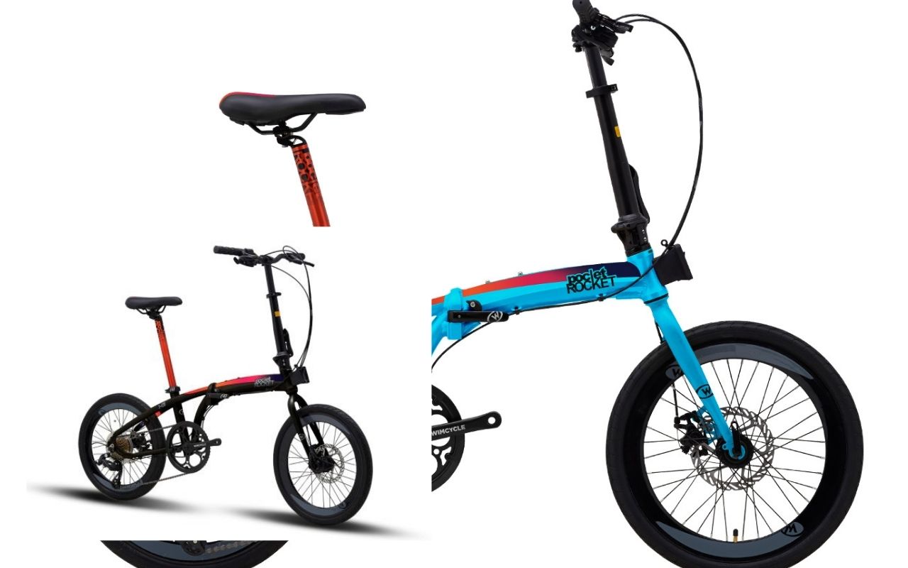 wimcycle pocket rocket x3 dengan frame alloy ringan dengan lipatan cepat saat kamu pakai di berbagai kegiatan dan ukuran roda 20 inch.