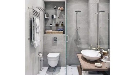 kamar mandi kecil sering kali memiliki keterbatasan ruang untuk penyimpanan. solusi terbaik adalah memanfaatkan area dinding kosong.