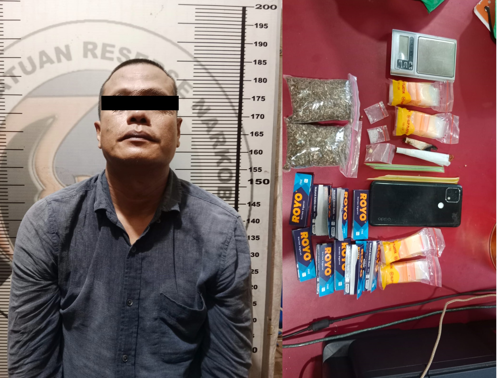 Selain narkotika, petugas juga mengamankan timbangan digital, bal klip bening, satu unit telepon genggam, serta sejumlah perlengkapan lain yang diduga digunakan untuk aktivitas peredaran narkoba.