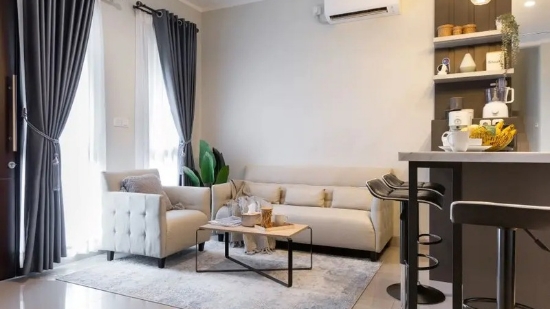 ruang tamu minimalis dengan sentuhan bar --dekoruma