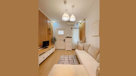 sofa cantik yang luas, karpet empuk, meja tamu, serta dekorasi manis menghadirkan kenyamanan sekaligus estetika.