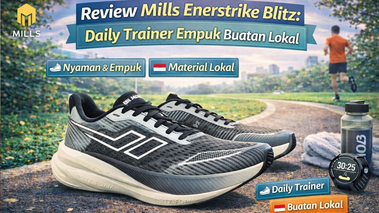 Salah satu buktinya adalah kehadiran Mills Enerstrike Blitz, sepatu lari yang dirancang khusus untuk kebutuhan latihan harian dengan karakter empuk dan stabil.