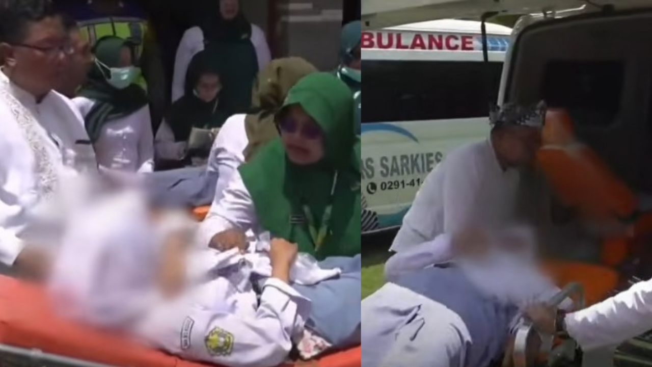 ambulans hilir mudik mengevakuasi korban, sementara proses belajar mengajar dihentikan sementara demi keselamatan siswa.