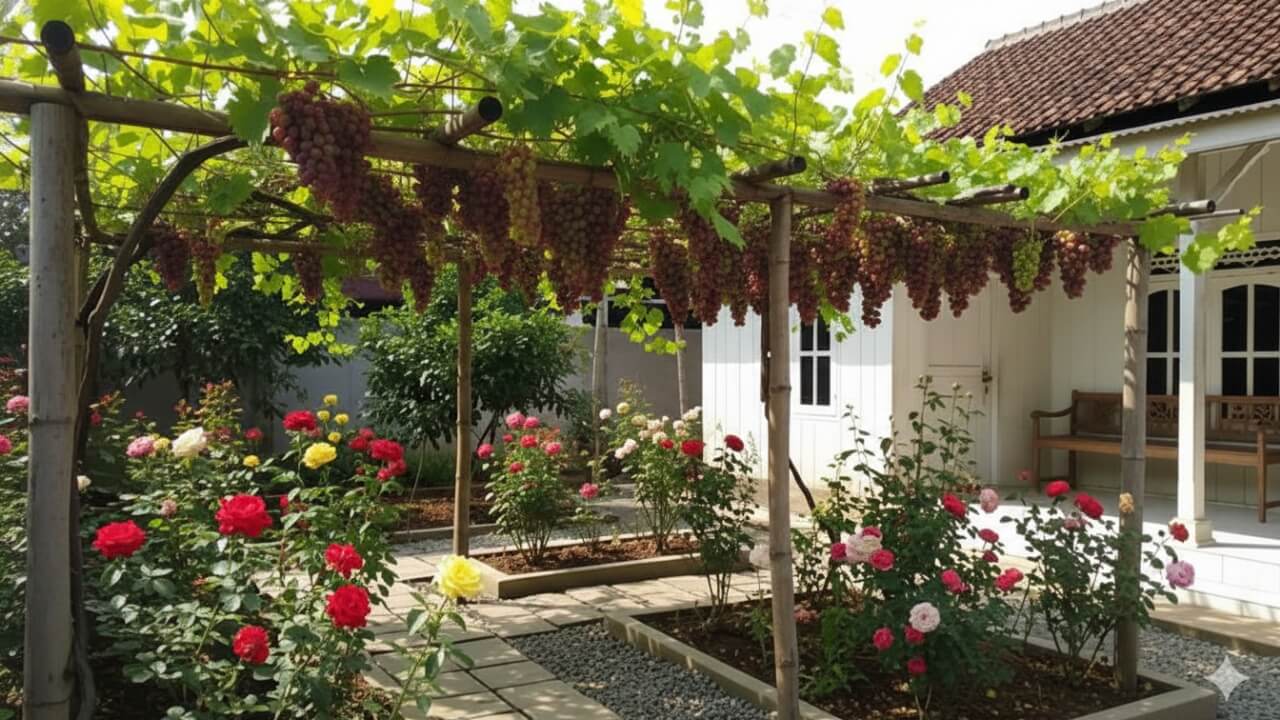 anggur, dengan karakteristiknya yang merambat, mampu memberikan naungan alami dan struktur vertikal yang menawan.
