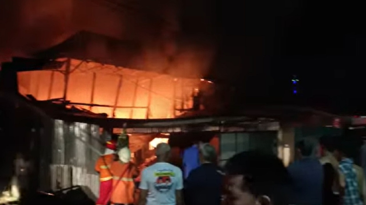 kobaran api cepat membesar dan menghanguskan toko yang informasinya milik fera rieza, beserta isinya.