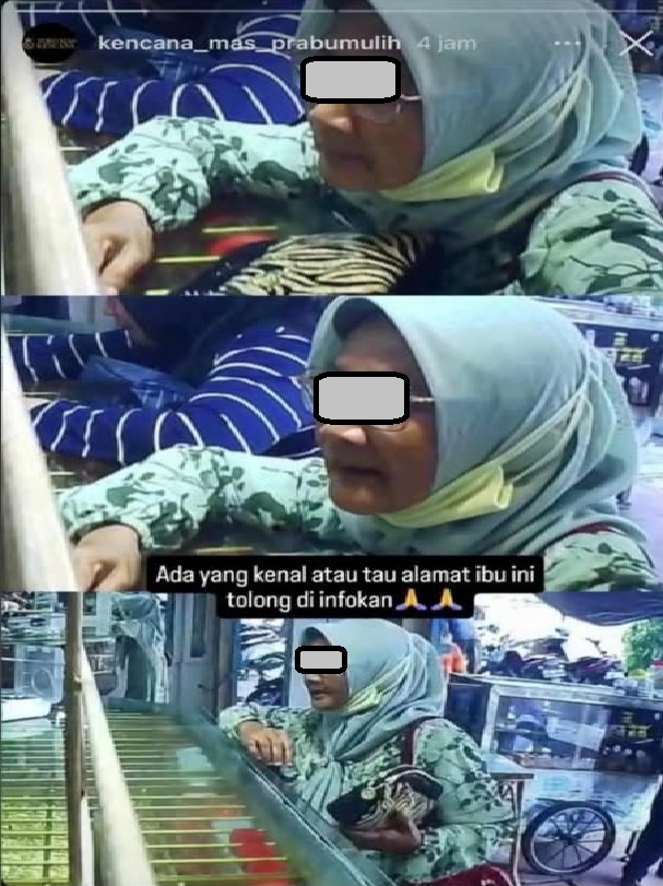 “Dicari! Bagi yang mengetahui keberadaan ibu yang memakai kacamata. Tolong dan mohon bantuannya. Silakan hubungi Toko Kencana Mas Prabumulih,” tulis akun tersebut dalam unggahannya.