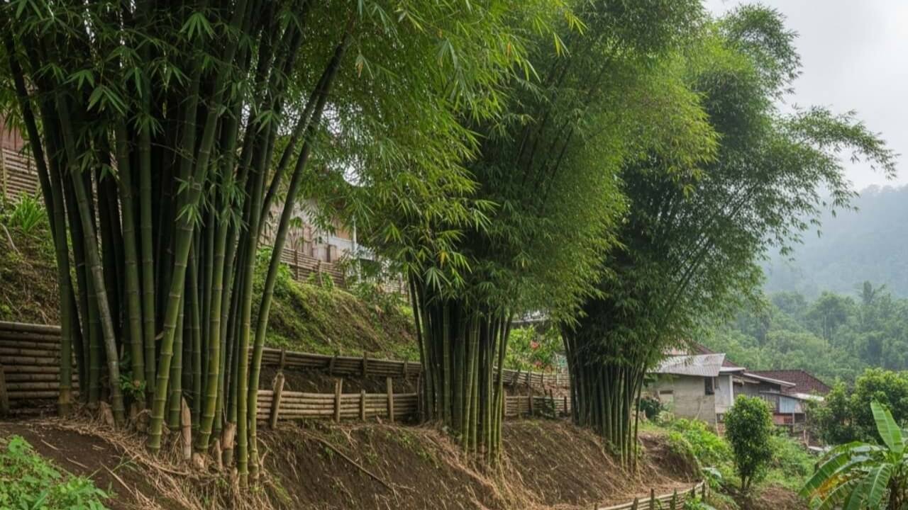 bambu petung dikenal sebagai salah satu jenis pohon penahan longsor paling efektif di lahan miring.
