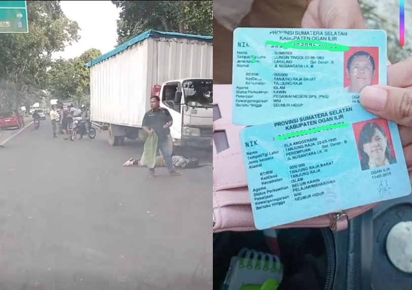 Kecelakaan lalulintas di Jalan Lintas Timur OKI. Tampak korban saat masih di TKP dan identitas yang di temukan dalam dompet korban--