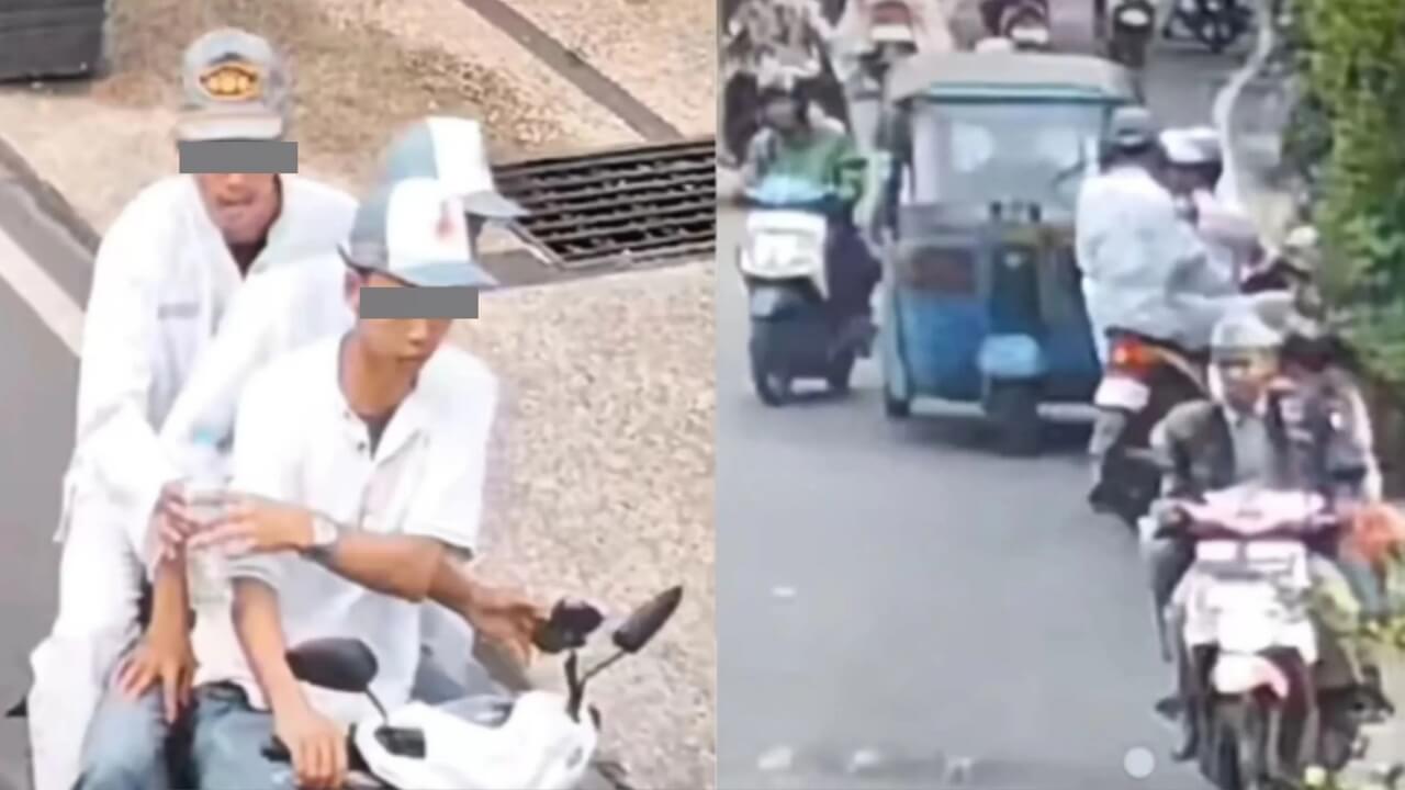 aksi penyiraman air keras itu sempat viral di media sosial. dalam rekaman yang beredar, terlihat tiga pelajar berseragam sekolah berboncengan di atas sepeda motor.