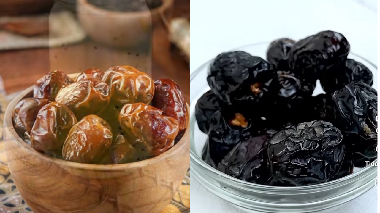 kurma mozafati berasal dari iran dan dikenal dengan warna hitamnya yang cantik.