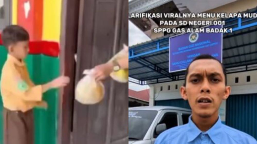Video kelapa muda di SD Muara Badak bikin heboh. Polres Bontang ungkap fakta: siswa terima paket MBG lengkap, bukan hanya kelapa!/Kolase Bacakoran.co--Instagram @pembasmii.kehaluan