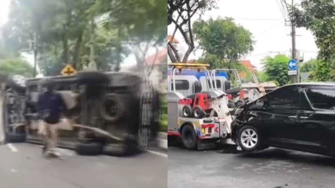 Insiden dramatis ini mengakibatkan satu unit Toyota Vellfire terguling di tengah jalan dan menyebabkan kemacetan panjang di salah satu jalur tersibuk di Kota Pahlawan ini.