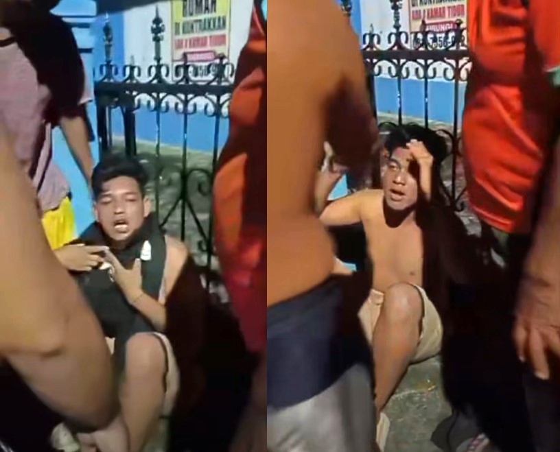 Dalam tayangan vidio itu terlihat, seorang pria yang memiting leher pemuda tersebut hingga terduduk di tepi jalan. Sementara beberapa pria lainnya bergantian menampar, meninju wajah pemuda yang belum diketahui identitasnya itu. "Woi jangan di gepuk (dipukul, red)