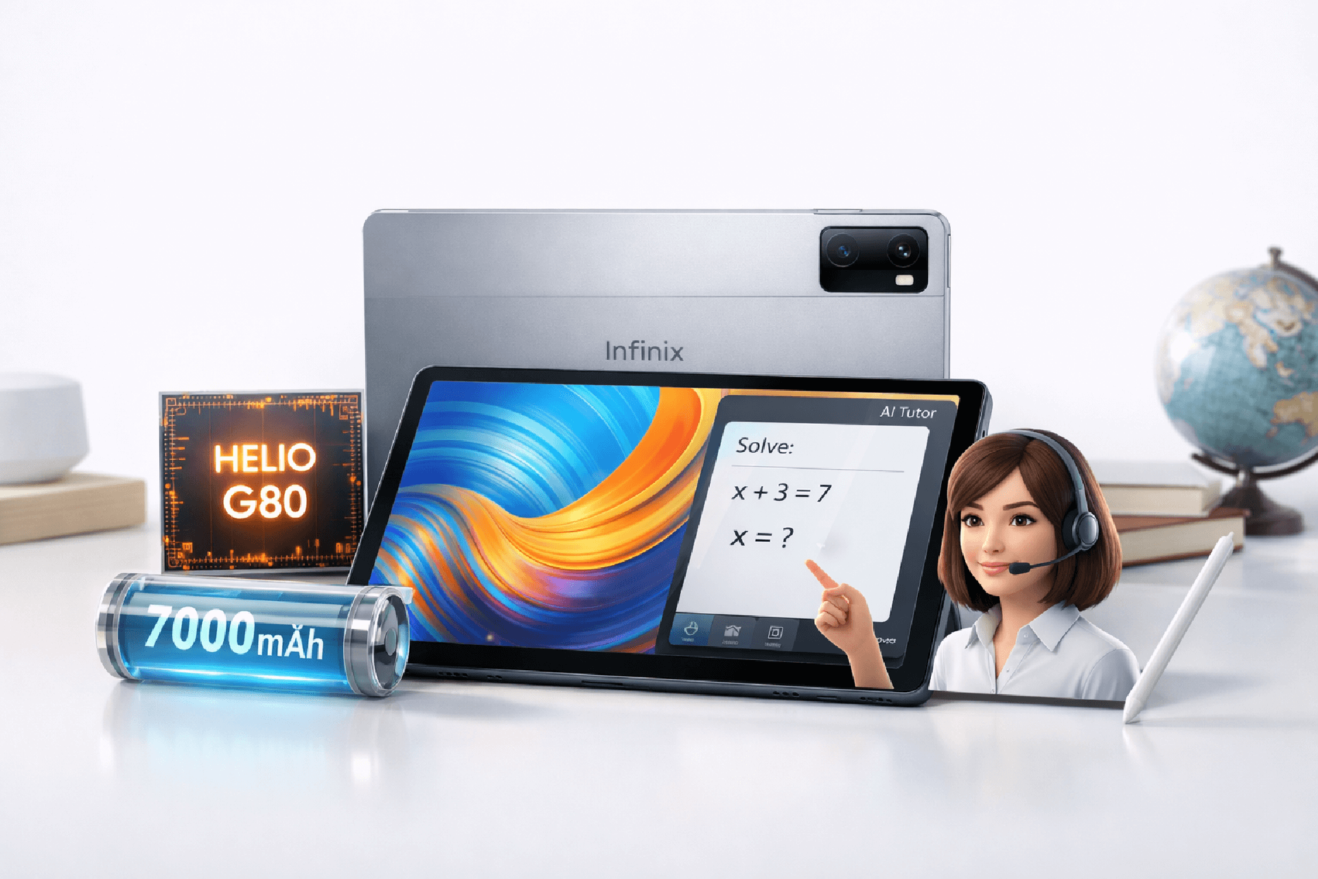 Perangkat ini hadir dengan layar 11 inci, chipset MediaTek Helio G80, baterai besar 7000mAh, serta fitur AI learning tools yang dirancang untuk mendukung aktivitas belajar digital.