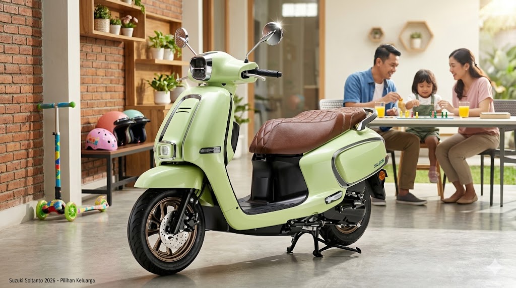 Mudik Lebaran 2026 makin gaya dengan Suzuki Soltanto. Skutik retro modern harga Rp21 jutaan, fitur lengkap, nyaman, dan hemat BBM!--edit by Gemini AI